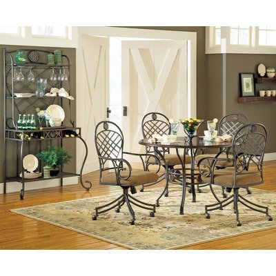 Steve Silver Furniture WB450T / WB450B The Wimberly Dining Table (Dark Cherry) is sure to exceed expectations and is versatile enough to match any homes décor. This table is enhanced by a beautiful diamond planked table top on a decorative metal base with woven medallion accents. Features: -Dining table. -Wimberly collection. -Rich Multi-Step Dark Cherry finish. -Contemporary style. -Corner blocked. -Tongue and groove joints. -Diamond planked top. -Table base has woven medallion accents. -Manufacturer provides one year limited warranty..../ Steve Silver Furniture WB450T / WB450B Wimberly Round Dining Table in Rich Multi-Step Dark Cherry / Dining Furniture